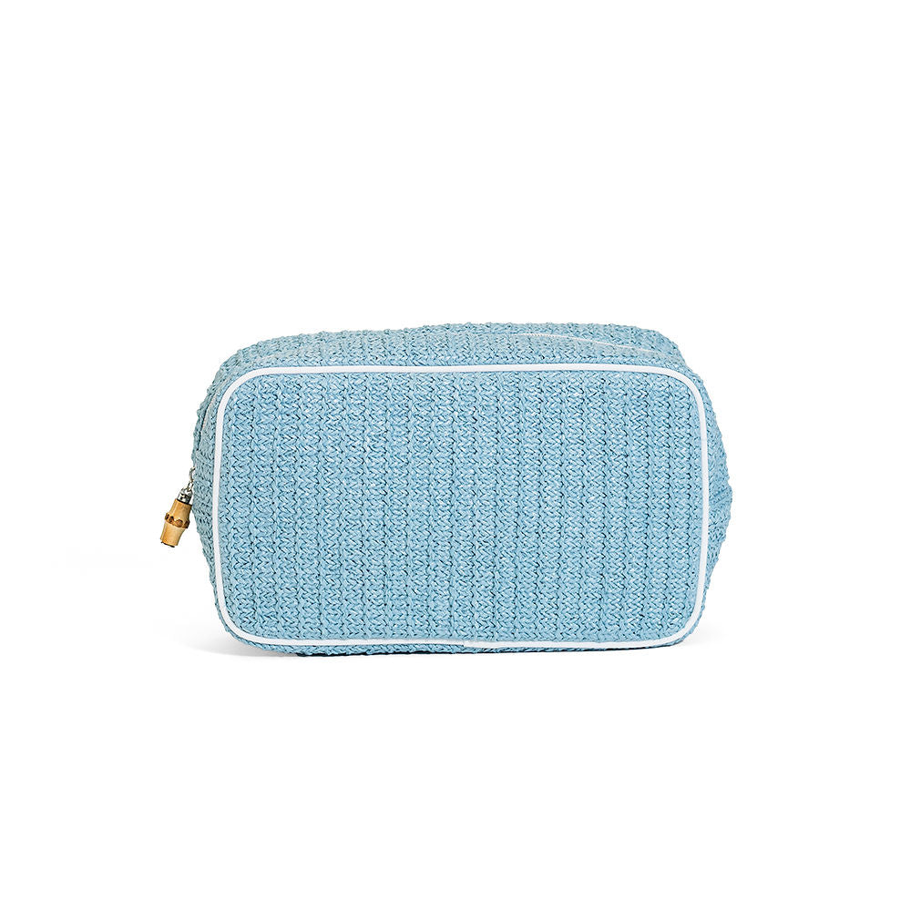 This beautiful straw GO Glam are perfect for makeup, makeup brushes, skincare products, nail polish, jewelry, and any additional accessories. With an open interior and back wall slip pocket this is the perfect catch-all to keep you organized.