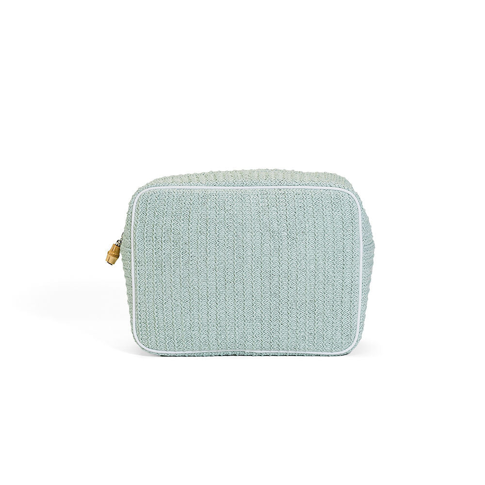 This beautiful straw XL Glam are perfect for makeup, makeup brushes, skincare products, nail polish, jewelry, and any additional accessories. With an open interior and back wall slip pocket this is the perfect catch-all to keep you organized.