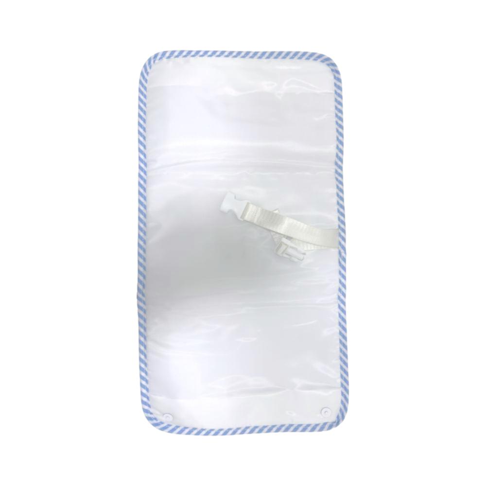 On the go with your baby? Our portable Game Changer can take you anywhere – it fits neatly into a diaper bag/tote, can be carried on the wrist, or simply clipped on to a stroller. It’s ideal for quick diaper changes with our easy-wipe inner lining, interior adjustable web clip strap and an outside zipper pocket that can hold diapers, ointments, and wipes.