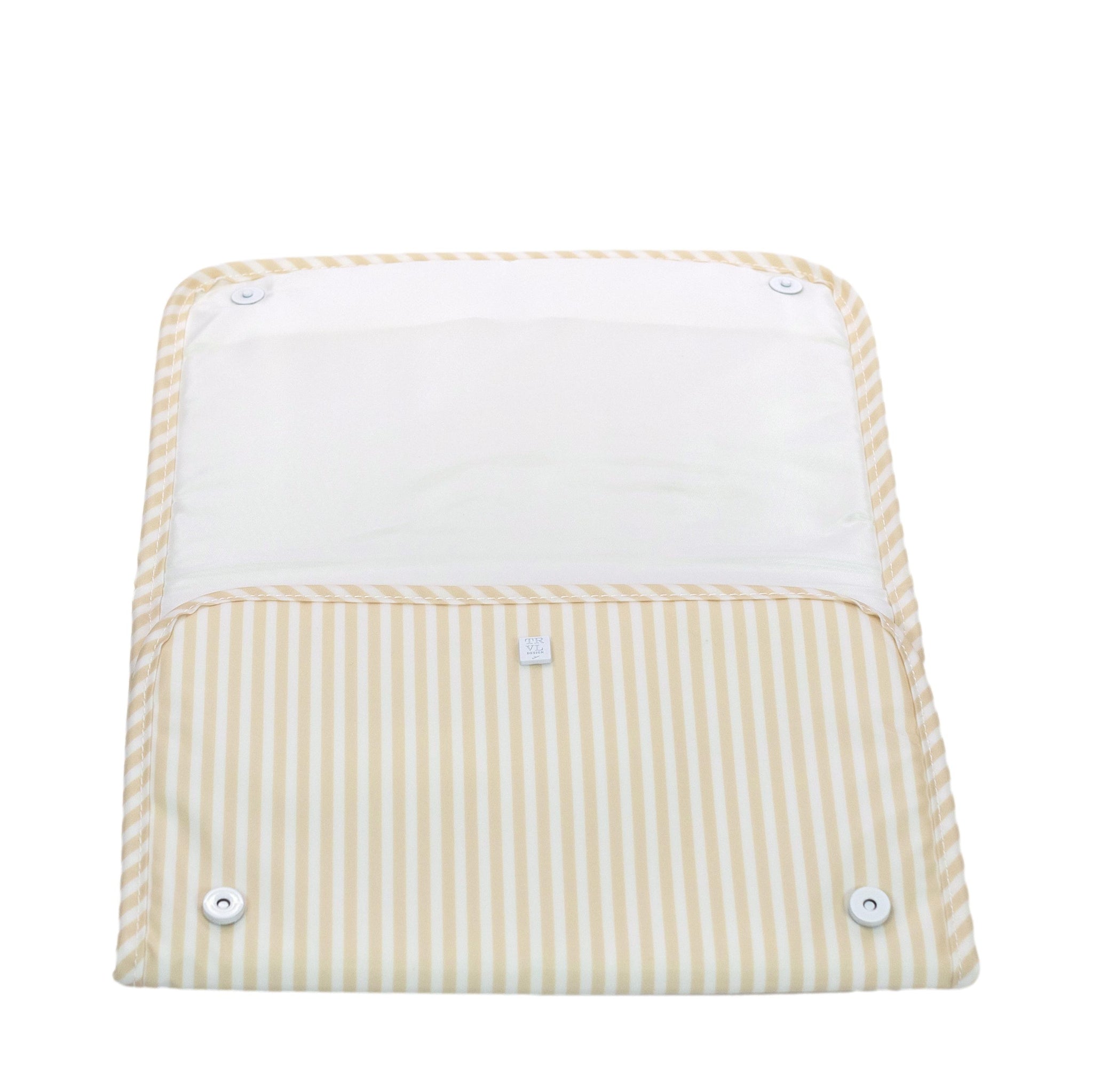 On the go with your baby? Our portable Game Changer can take you anywhere – it fits neatly into a diaper bag/tote, can be carried on the wrist, or simply clipped on to a stroller. It’s ideal for quick diaper changes with our easy-wipe inner lining, interior adjustable web clip strap and an outside zipper pocket that can hold diapers, ointments, and wipes.