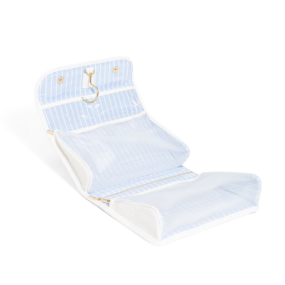 Effortless organization meets elevated design in our Luxe Woven Hanging Toiletry Bag, now available in Blanc. Crafted in our signature wipeable woven material, this travel-ready essential is as practical as it is sophisticated. The thoughtfully designed interior features a pinstripe coordinate liner with a clear overlay, offering easy-to-clean function—designed to travel beautifully, wherever life takes you.