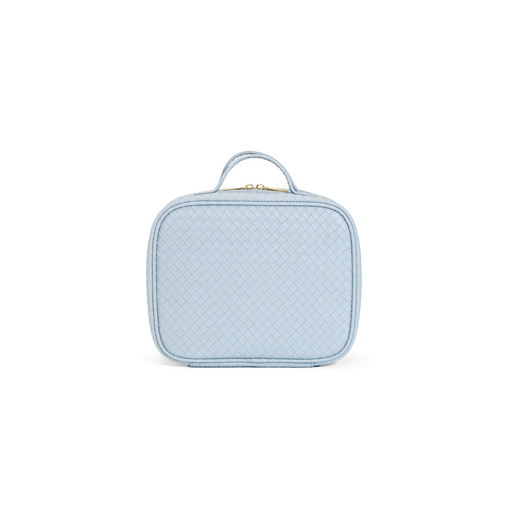 The Luxe Woven TRVL2 Cosmetic Case in Surf is a polished update to a classic—crafted in our textured vegan woven with a wipeable finish and lined in our coordinating pinstripe interior. Spacious and organized with 3 removable pouches, a zip pocket, and chic gold hardware, it’s the ultimate travel-ready essential.