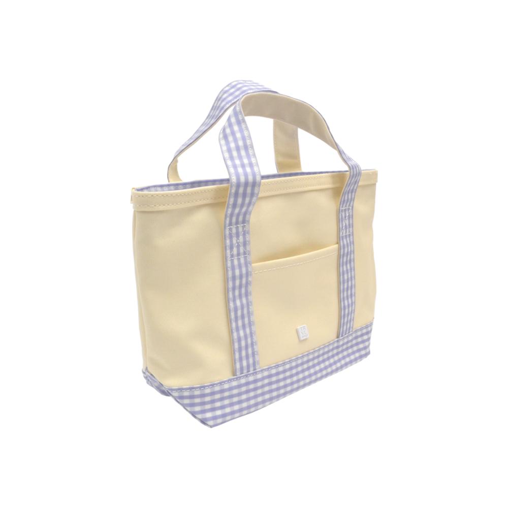 MINI TOTE - COATED CANVAS NATURAL With GINGHAM LILAC TRIM