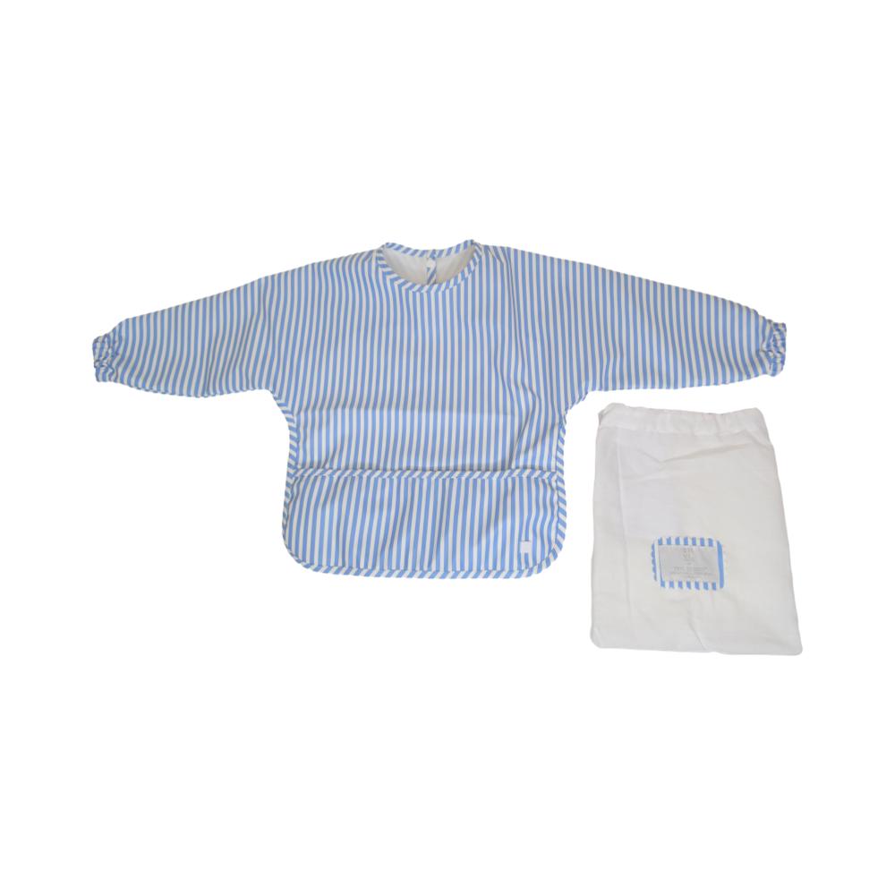 From mealtime to playtime, our Perfect Large Smock protects your little one's clothing without having to worry about the mess. Designed with long sleeves, comfortable elastic cuffs that prevents food from seeping in, and a snap closure in the back for easy on and off. The front pocket catches any dropped food or drink and is a perfect place to hold supplies for any creative activity. The material is so soft that you can gently use to wipe their faces and won't harm their delicate skin. Easy to wipe clean or simply place in your washing machine and hang dry. Comes packed in a cute cotton drawstring bag for easy display and storage.