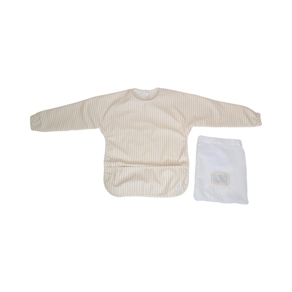 From mealtime to playtime, our Perfect Large Smock protects your little one's clothing without having to worry about the mess. Designed with long sleeves, comfortable elastic cuffs that prevents food from seeping in, and a snap closure in the back for easy on and off. The front pocket catches any dropped food or drink and is a perfect place to hold supplies for any creative activity. The material is so soft that you can gently use to wipe their faces and won't harm their delicate skin. Easy to wipe clean or simply place in your washing machine and hang dry. Comes packed in a cute cotton drawstring bag for easy display and storage.