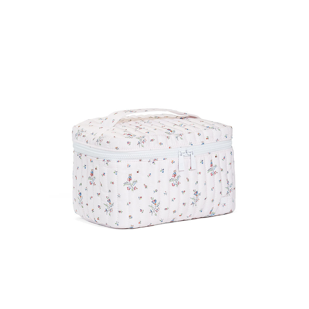 Our Quilted Train Set is super stylish and lightweight that will keep your cosmetics organized on the go. It opens up to offer ample room for makeup and beauty products, a zippered mesh pocket on the inside lid, elasticized compartments around the outer edge, and a removeable clear pouch. This set makes the perfect thoughtful gift for a lover of beauty and cosmetics or it can be an ideal treat for yourself when you're off on your travels.