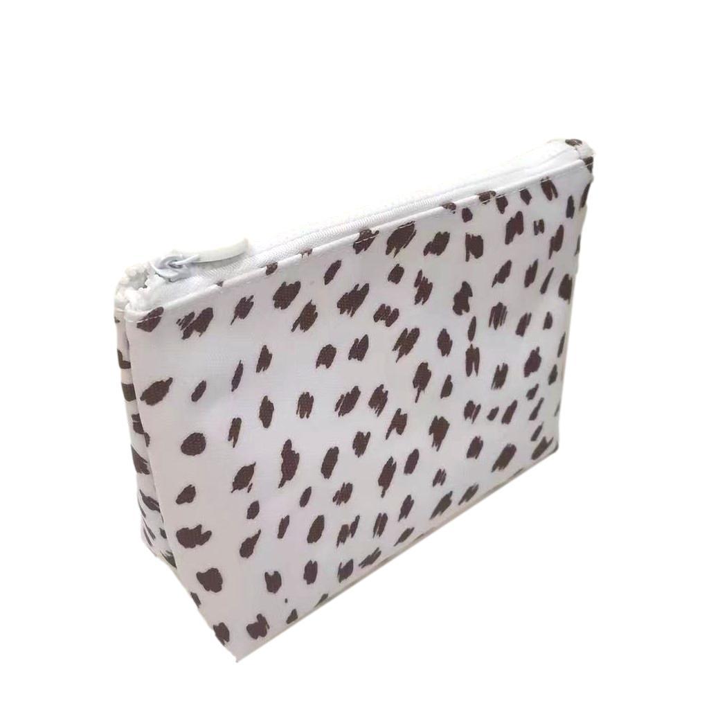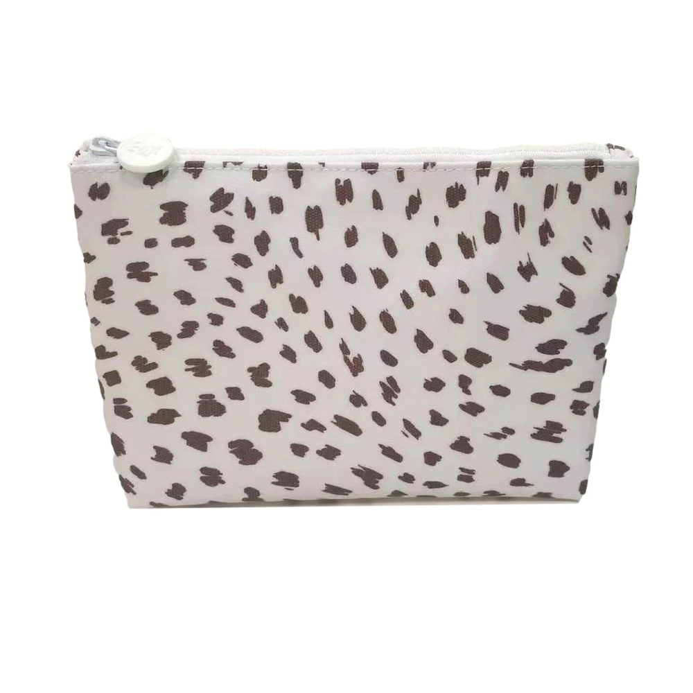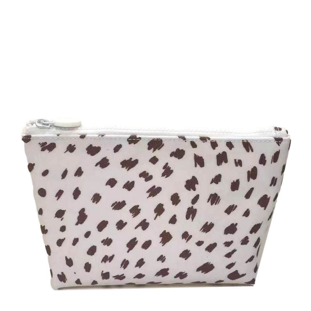 Our large top zip cosmetic bag is made from heavy-duty white coated cotton canvas in our signature SPOT ON! print. This chic Clutch is perfect for any outing, beach or every day keeping you organized with a heavy duty zip, interior slip pocket, and waterproof and stain resistant materials.